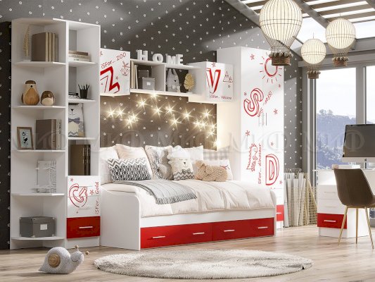 Стеллаж угловой Вега Алфавит красный (Миф)