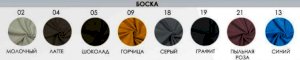 | Цвет | БЕЖЕВЫЙ / БЕЛЫЙ / ГОЛУБОЙ / ЖЕЛТЫЙ / ЗЕЛЕНЫЙ / КОРИЧНЕВЫЙ / КРАСНЫЙ / РОЗОВЫЙ / САЛАТОВЫЙ / СЕРЫЙ / СИНИЙ / СИРЕНЕВЫЙ / ЧЕРНЫЙ / КОФЕ |