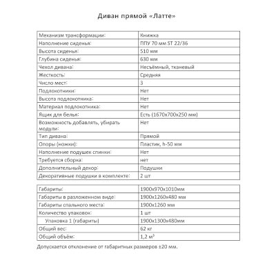 Диван Латте (Аквилон) – товар доступен к покупке в интернет-магазине dmebeli.ru. Цена – 28 565 руб. без учета доставки. Стоимость дополнительных услуг и сроки получения мебели уточняйте у менеджера. Возможен безналичный расчет, оплата по карте на сайте.