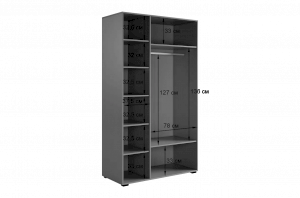 Шкаф имеет удобное наполнение: слева расположены полки для хранения вещей, а справа - штанга для вешалок. Это позволяет рационально использовать пространство и разместить различные типы одежды.