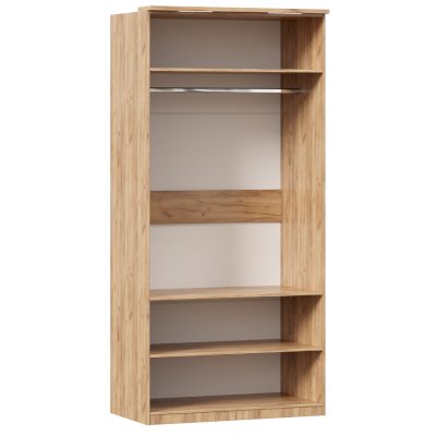 - За 2 распашными фасадами 3 полки и штанга для одежды. Высота ниши со штангой 1250 мм