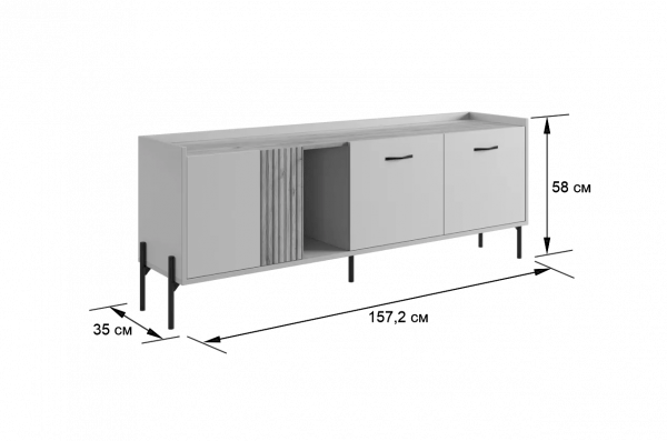 Стильные металлические ручки придают тумбе современный и модный вид. Открытая ниша обеспечивает легкий доступ к вещам, которые вы используете часто, или может служить пространством для размещения медиа-устройств.