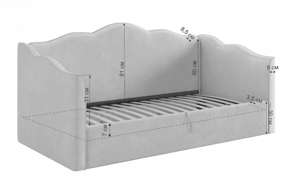 Кровать оснащена надежным подъемным механизмом, обеспечивающим доступ к вместительному ящику для хранения постельного белья и других вещей. Декоративные подушки с кисточками добавляют изысканности (входят в комплект), а специальный чехол для матраца обеспечивает дополнительную гигиеничность и удобство использования (комплектуется отдельно).