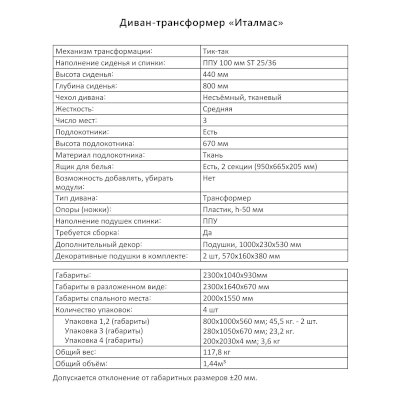 Диван-трансформер Италмас (Аквилон) – товар доступен к покупке в интернет-магазине dmebeli.ru. Цена – 73 394 руб. без учета доставки. Стоимость дополнительных услуг и сроки получения мебели уточняйте у менеджера. Возможен безналичный расчет, оплата по карте на сайте.